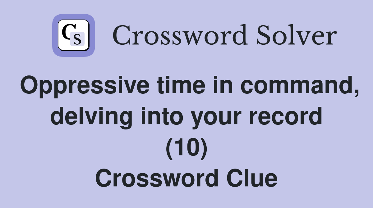 Oppressive time in command delving into your record (10) Crossword