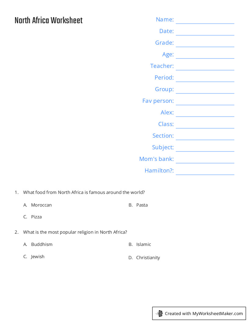 North Africa Worksheet My Worksheet Maker: Create Your Own Worksheets