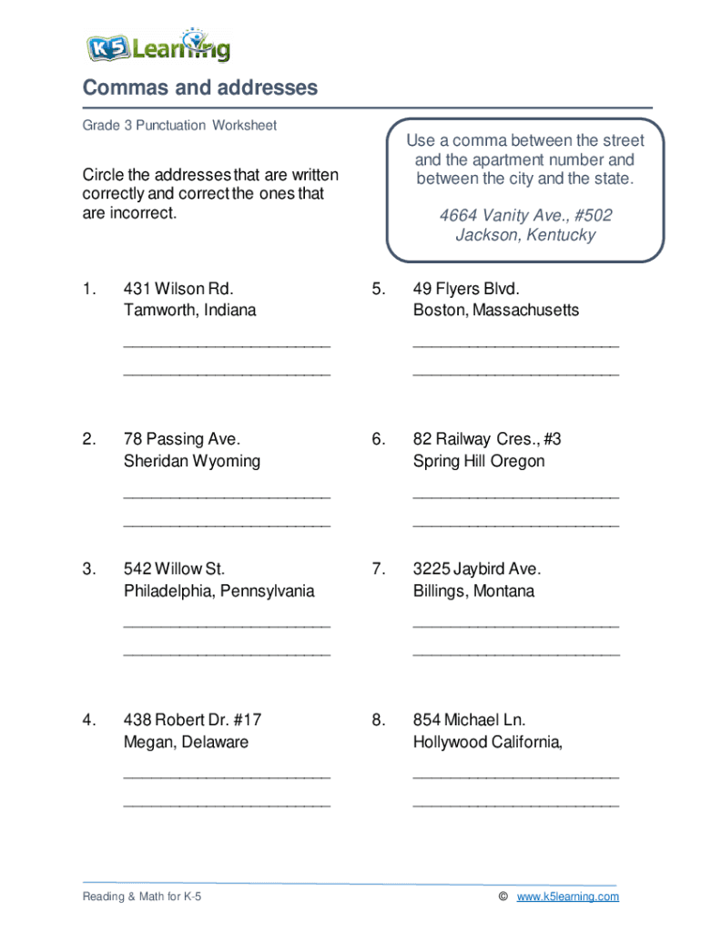 Here are some of the images for Commas In Addresses Worksheet that we found in our website database.