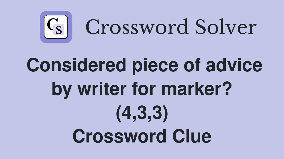 Considered piece of advice by writer for marker? (4 3 3) Crossword