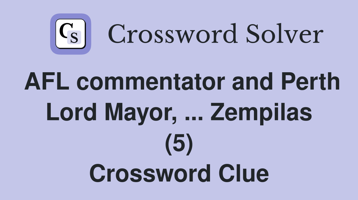 AFL commentator and Perth Lord Mayor Zempilas (5) Crossword Clue