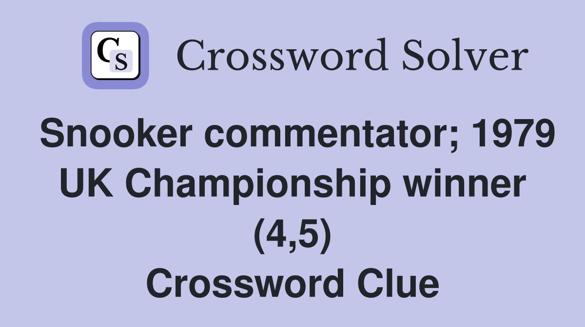 Snooker commentator 1979 UK Championship winner (4 5) Crossword Clue