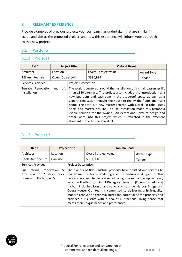 Business Proposal Template for renovation and construction of