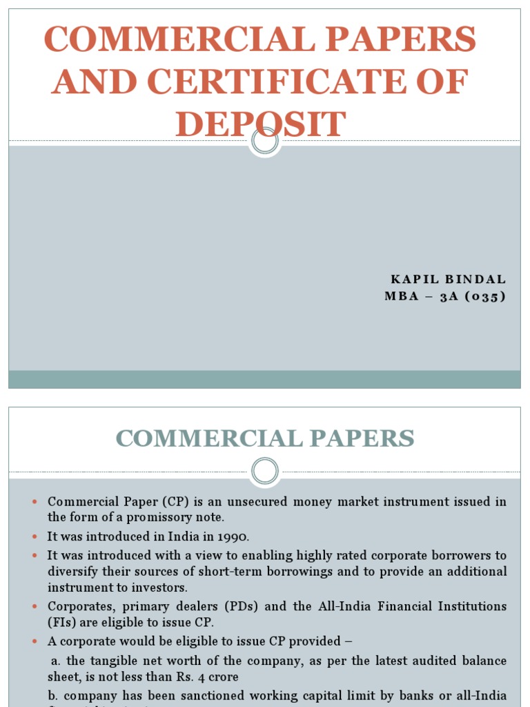 Commercial papers and certificate of deposit DOC