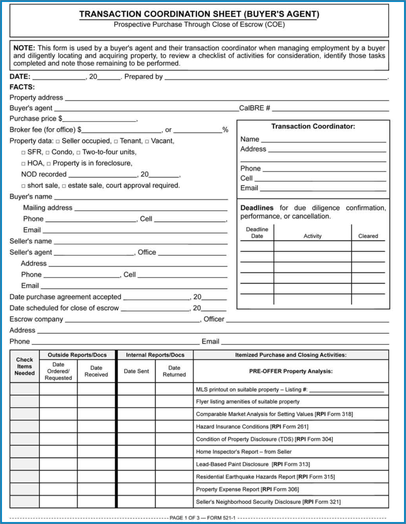 Printable Real Estate Transaction Coordinator Checklist