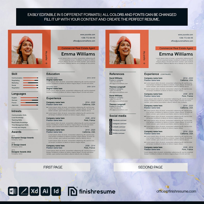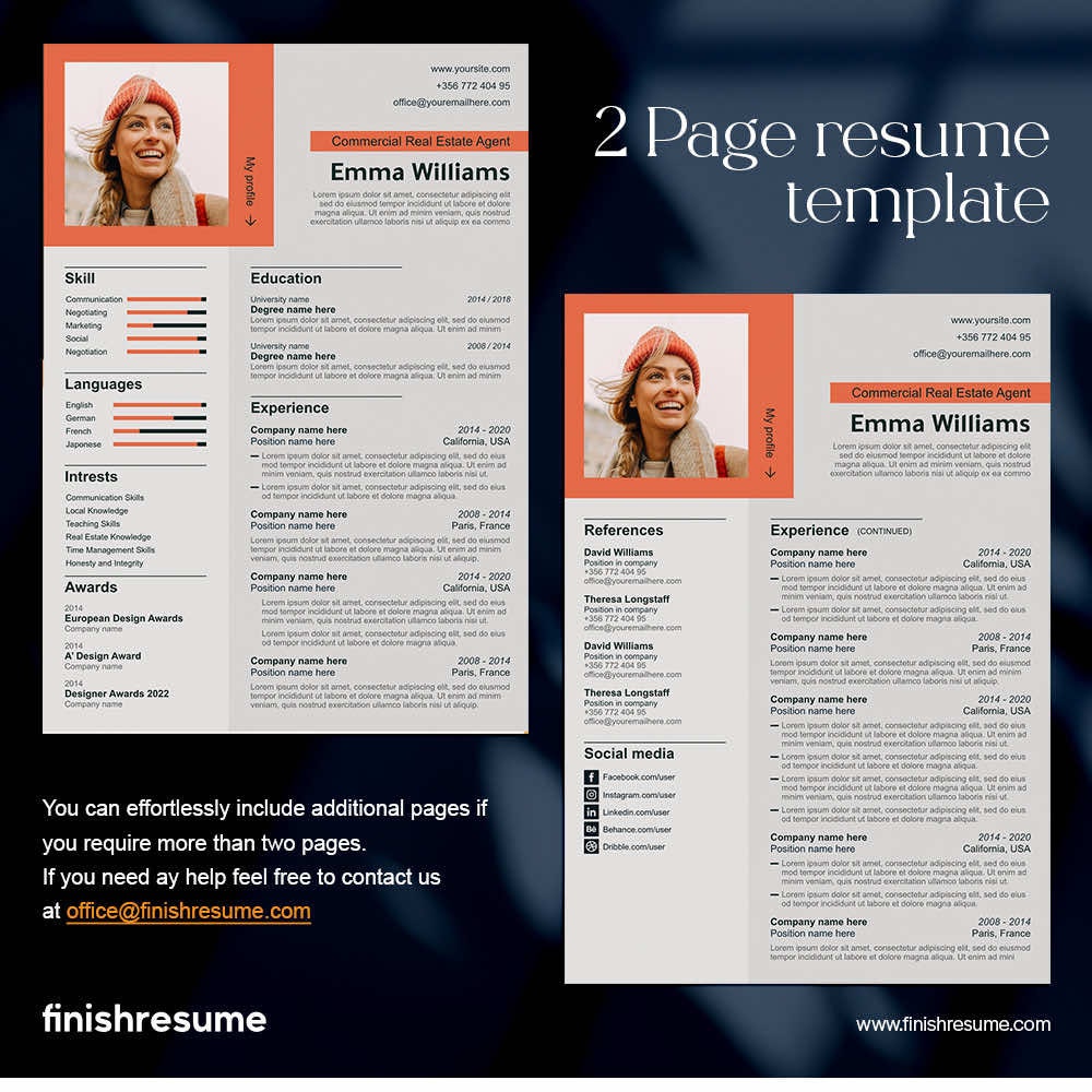 Real Estate Resume Template for Microsoft Word Apple Pages Etsy