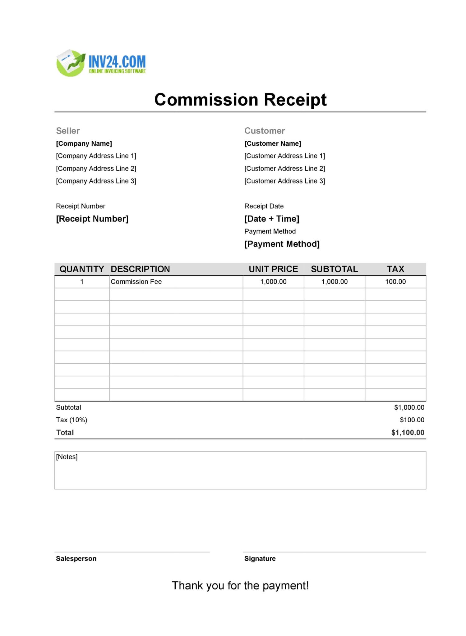 Commission Receipt Template