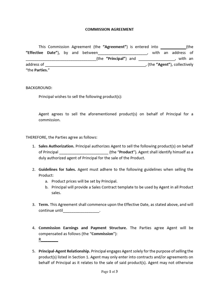 Commission Agreement Template Create a Solid Agreement Between Agent