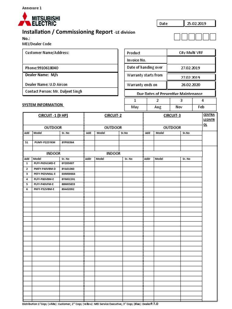 PM Commissioning Report Format PDF