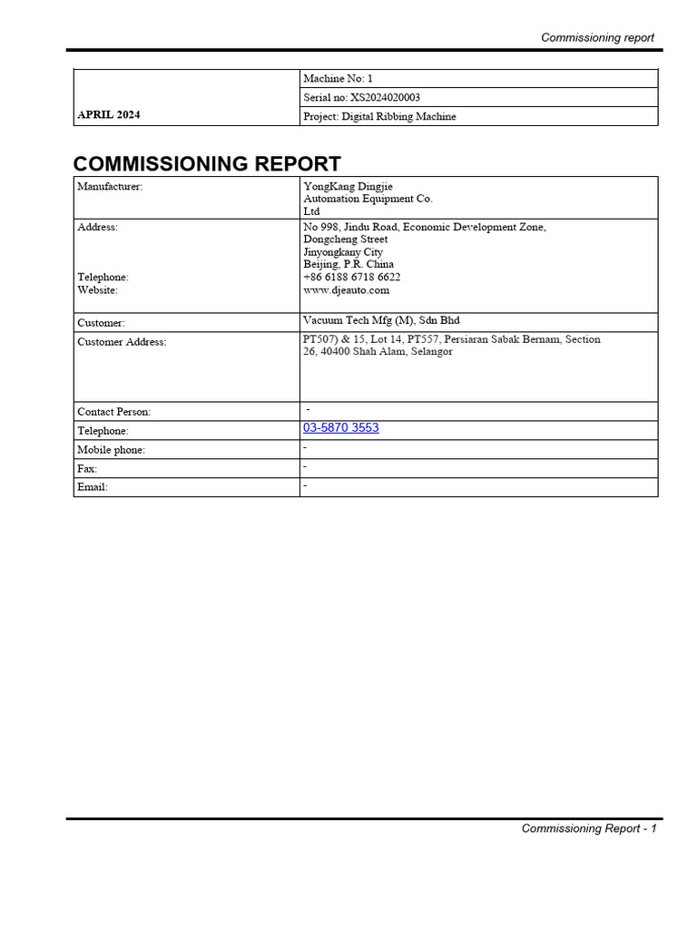 Machine Commissioning Report PDF