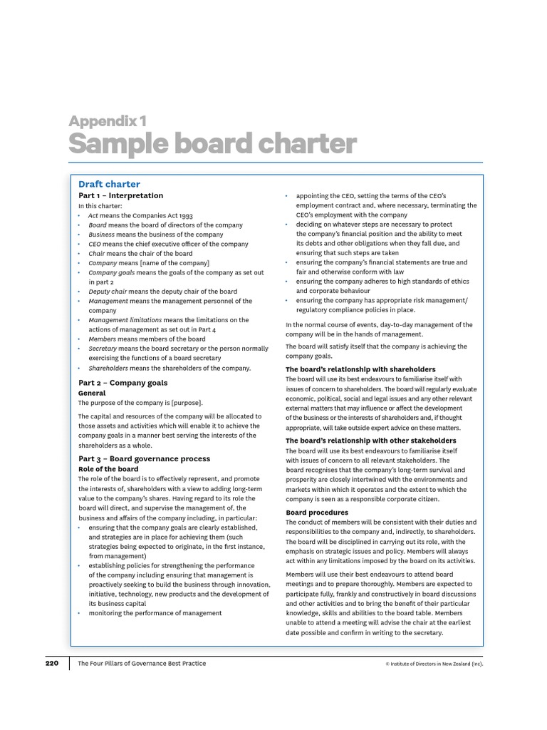 Sample Board Charter Download Free PDF Board Of Directors Committee