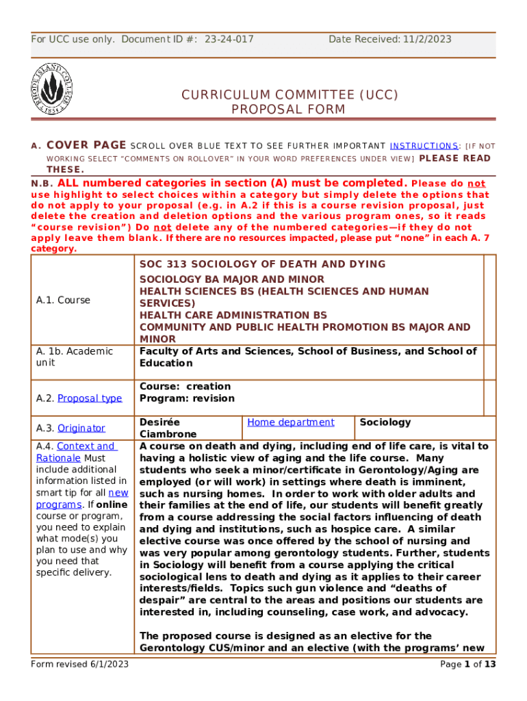 Undergraduate Curriculum Committee Proposal Doc Template pdfFiller