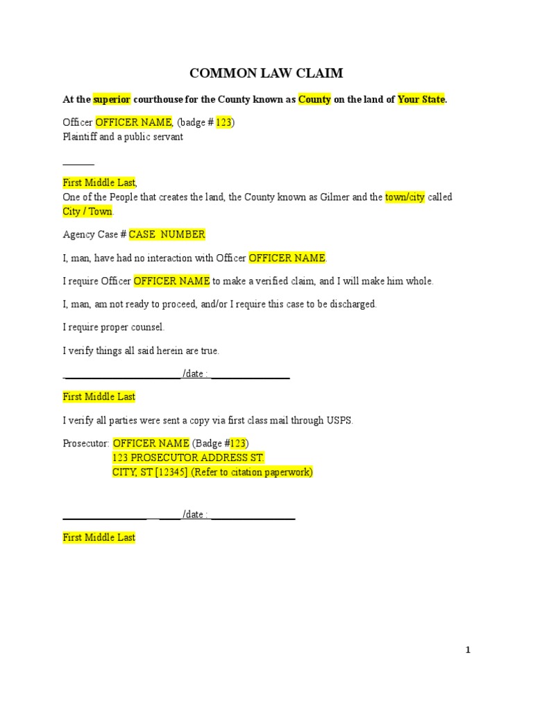 Common Law Claim Template