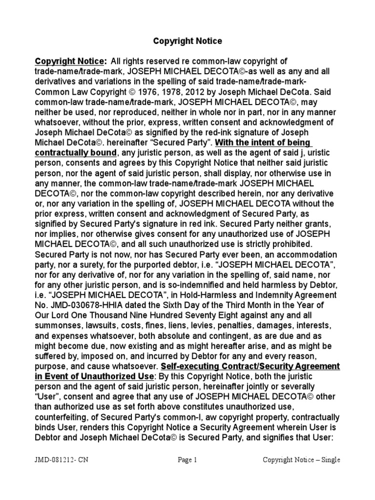Common Law Copyright Notice PDF Security Interest Justice