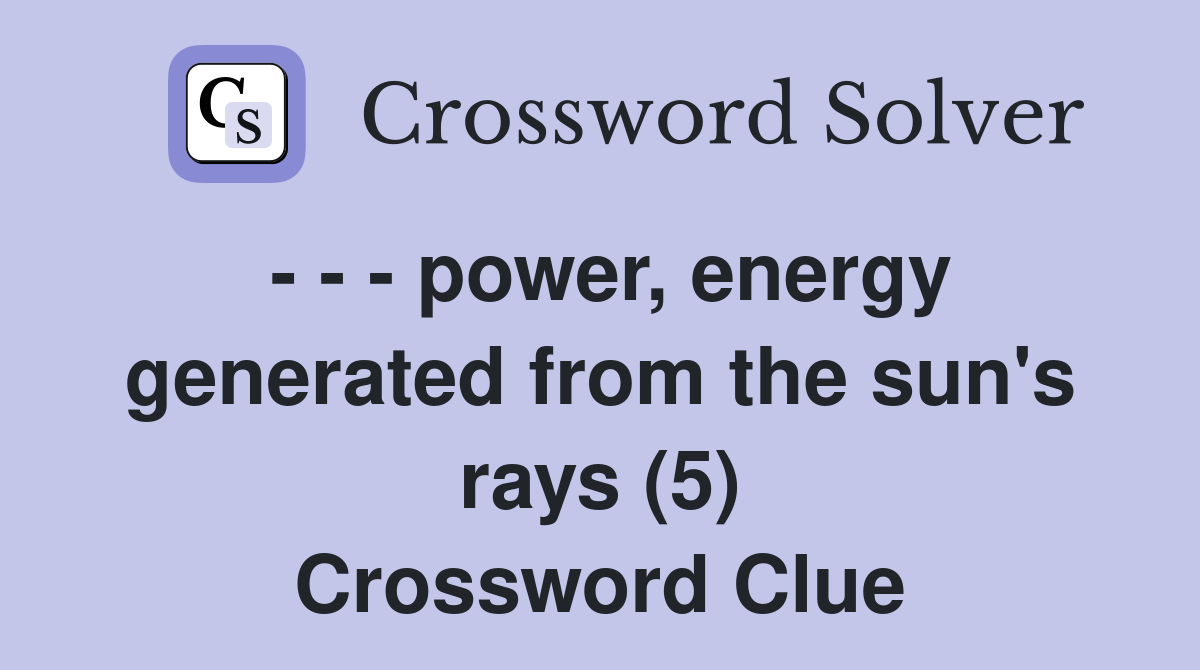 power energy generated from the sun #39 s rays (5) Crossword Clue