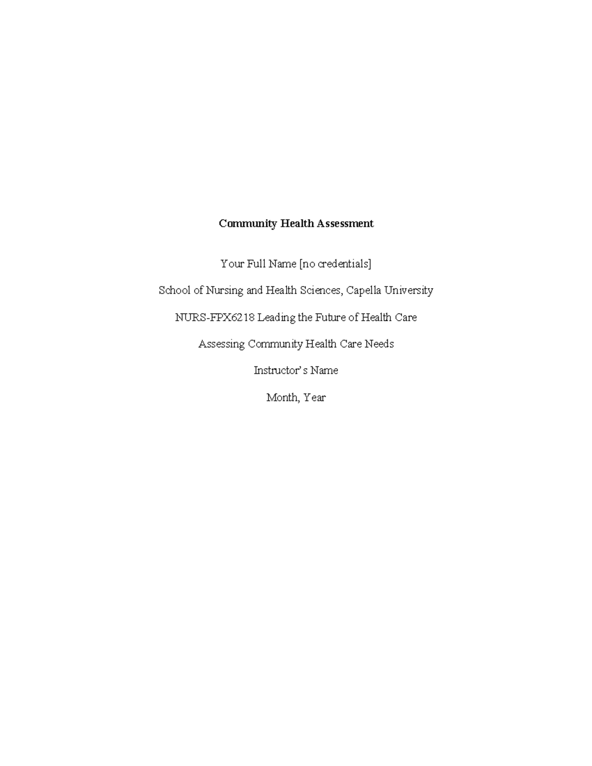 cf community health assessment template 2 docx 1 Community Health