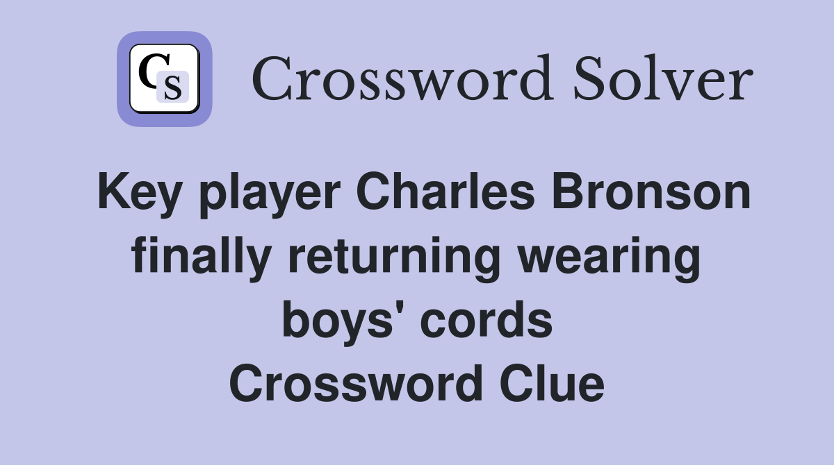 Key player Charles Bronson finally returning wearing boys #39 cords