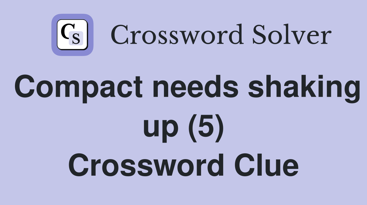 Compact needs shaking up (5) Crossword Clue Answers Crossword Solver