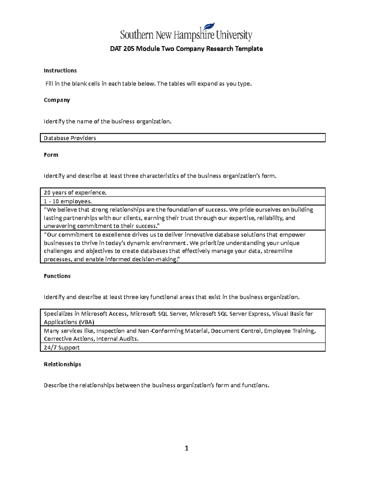 DAT 205 Module Two Company Research Template (finished) DAT 205