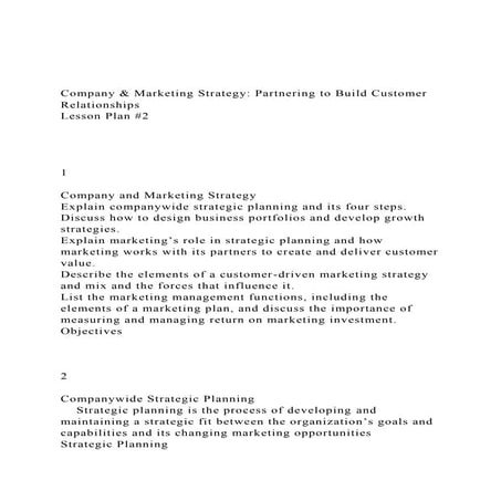 Company Marketing Strategy Partnering to Build Customer Rel docx