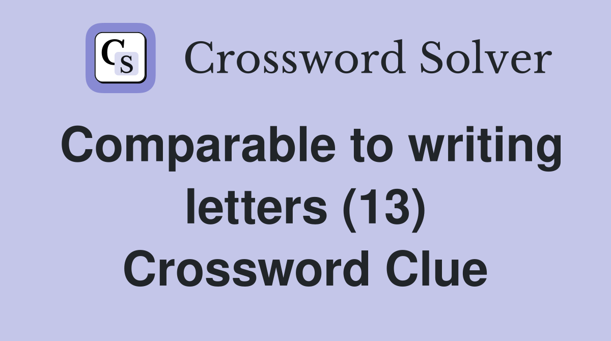 Comparable to writing letters (13) Crossword Clue Answers Crossword