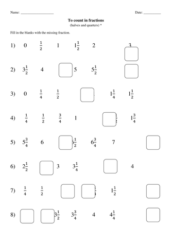 Counting in Fractions Differentiated Worksheets halves quarters and