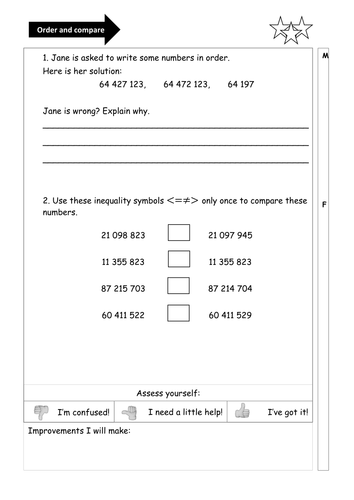 Ordering and Comparing Large numbers Teaching Resources
