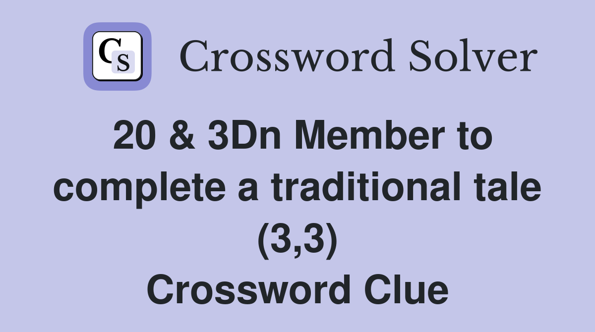 20 3Dn Member to complete a traditional tale (3 3) Crossword Clue