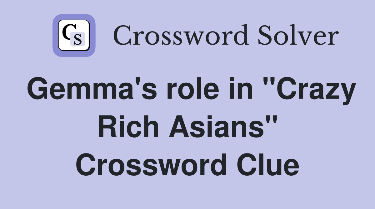 Gemma #39 s role in quot Crazy Rich Asians quot Crossword Clue Answers