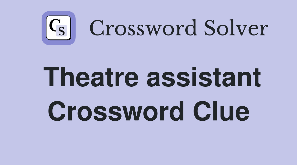 Theatre assistant Crossword Clue Answers Crossword Solver