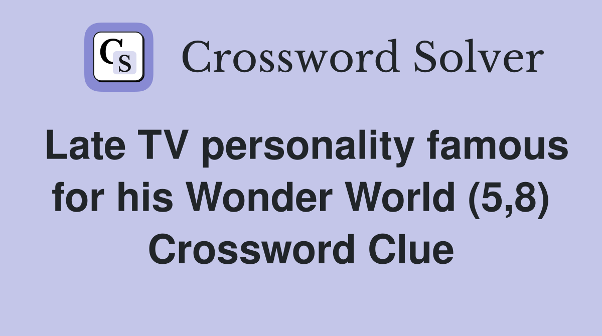Late TV personality famous for his Wonder World (5 8) Crossword Clue