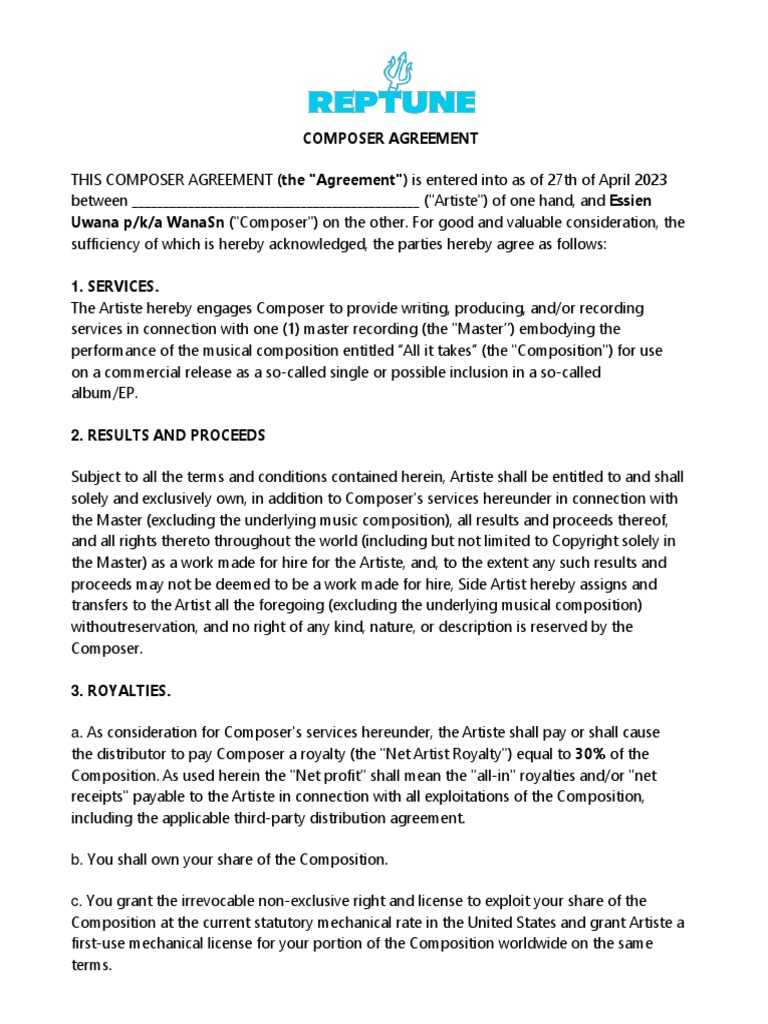 Composer Agreement PDF Royalty Payment Intellectual Works