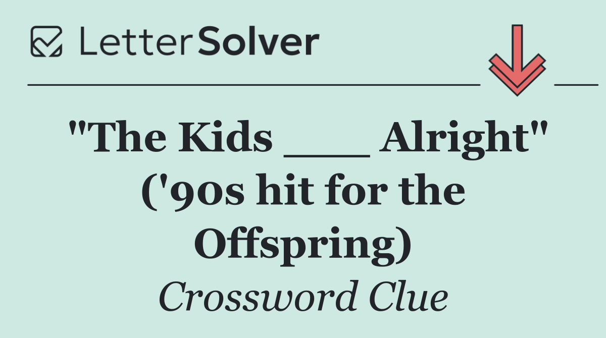 quot The Kids Alright quot ( #39 90s hit for the Offspring) Crossword Clue Answers