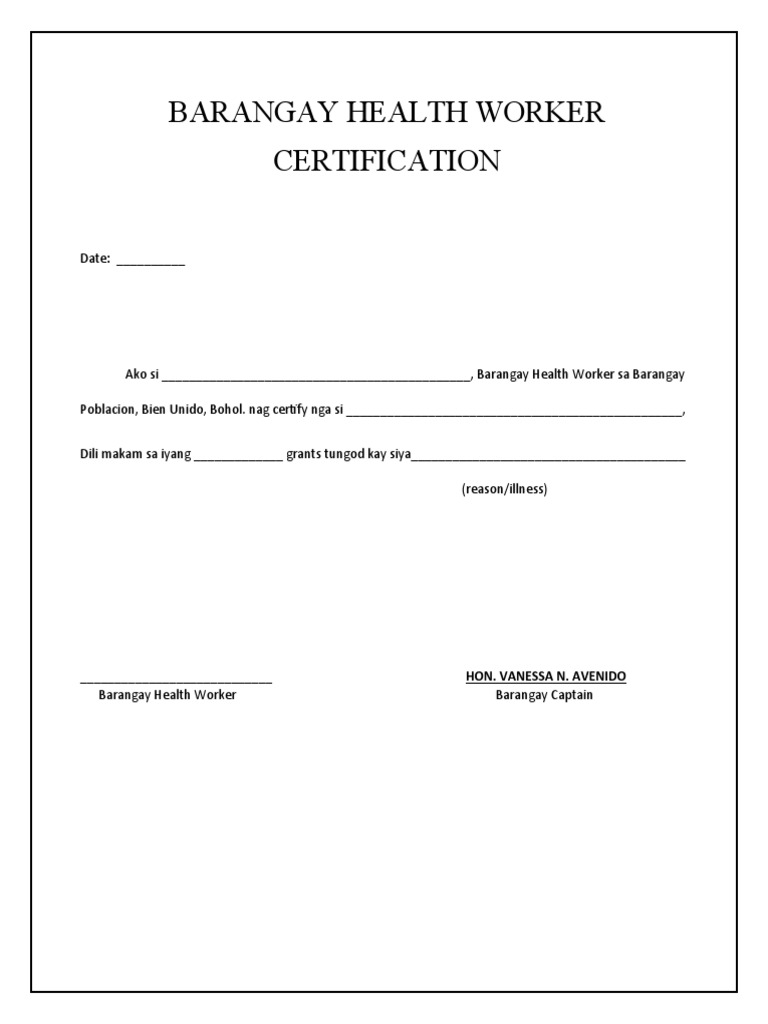 Barangay Health Worker Certificate PDF