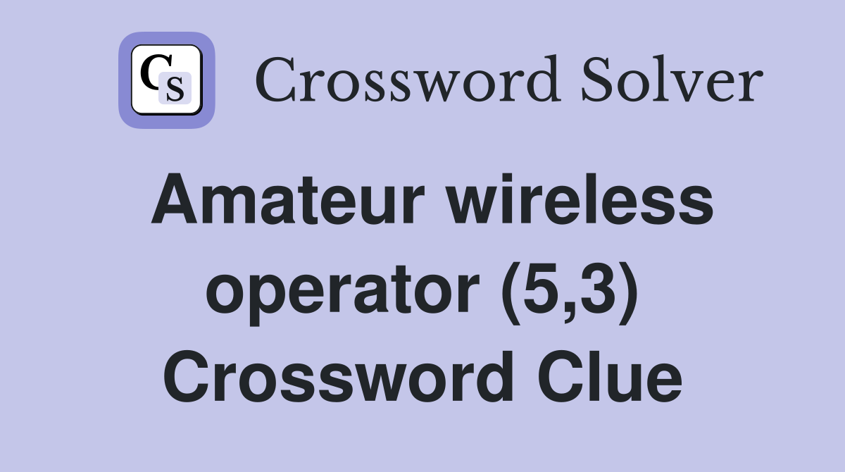 Amateur wireless operator (5 3) Crossword Clue Answers Crossword Solver