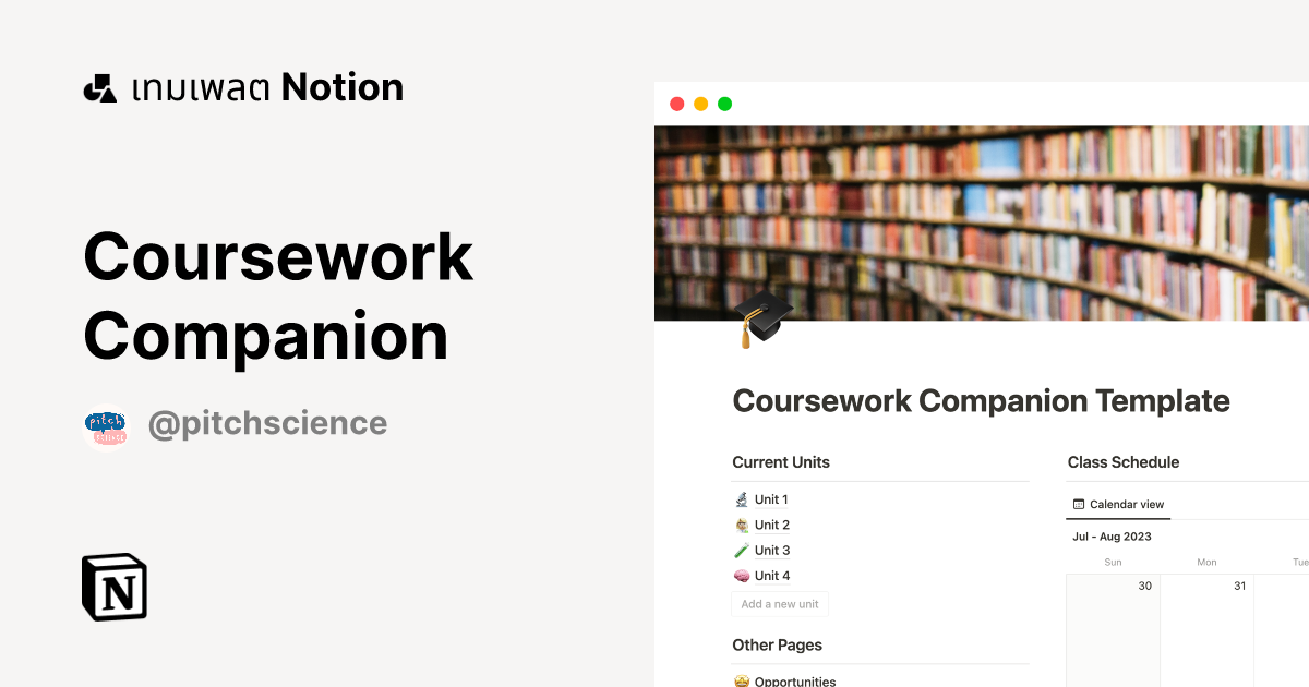 เทมเพลต Coursework Companion โดย Pitch Science มาร์เก็ตเพลส Notion