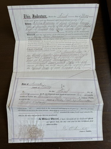 1876 Virginia City Nevada Land Deed Document C St (Comstock Lode