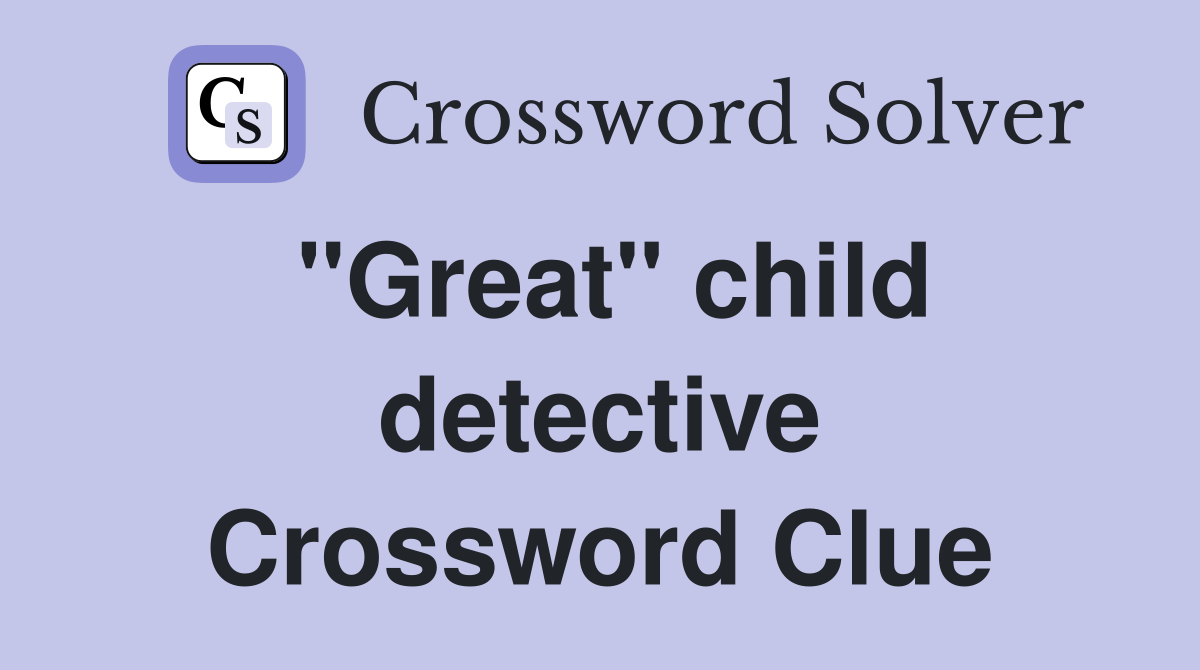 quot Great quot child detective Crossword Clue Answers Crossword Solver