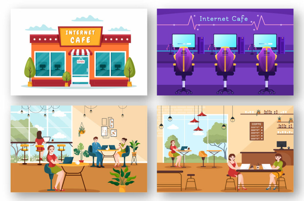 Premium Vector Cyber cafe with multiple monitor screen and computer