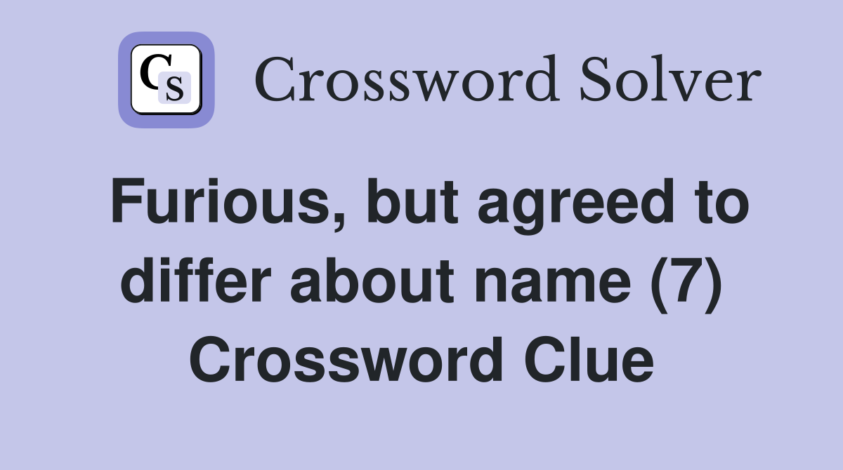 Furious but agreed to differ about name (7) Crossword Clue Answers