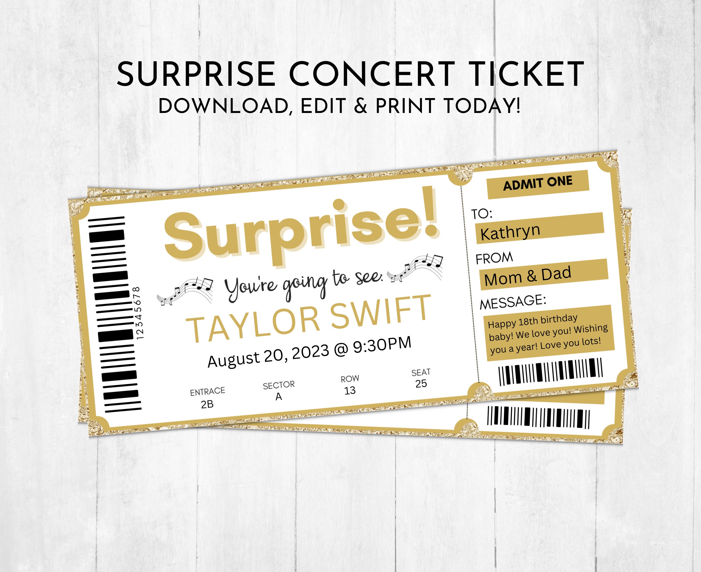 Editable Concert Ticket Template Custom Concert Ticket Gift Surprise