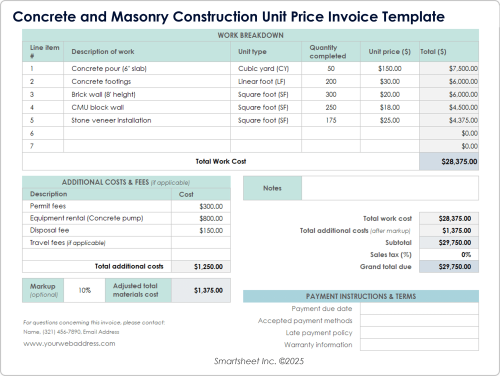Free Construction Invoice Templates in Excel Billdu