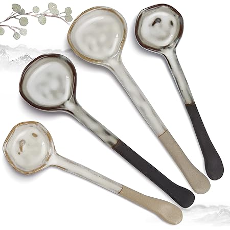Amazon com: Ceramic Soup Spoons Sets of 4 Asian Soup Spoons Long Handle