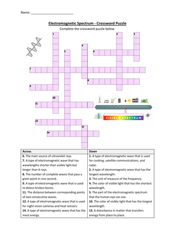 Electromagnetic Spectrum Crossword Puzzle Worksheet Activity