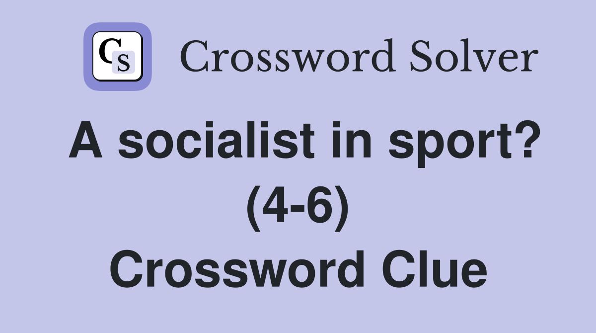 A socialist in sport? (4 6) Crossword Clue Answers Crossword Solver