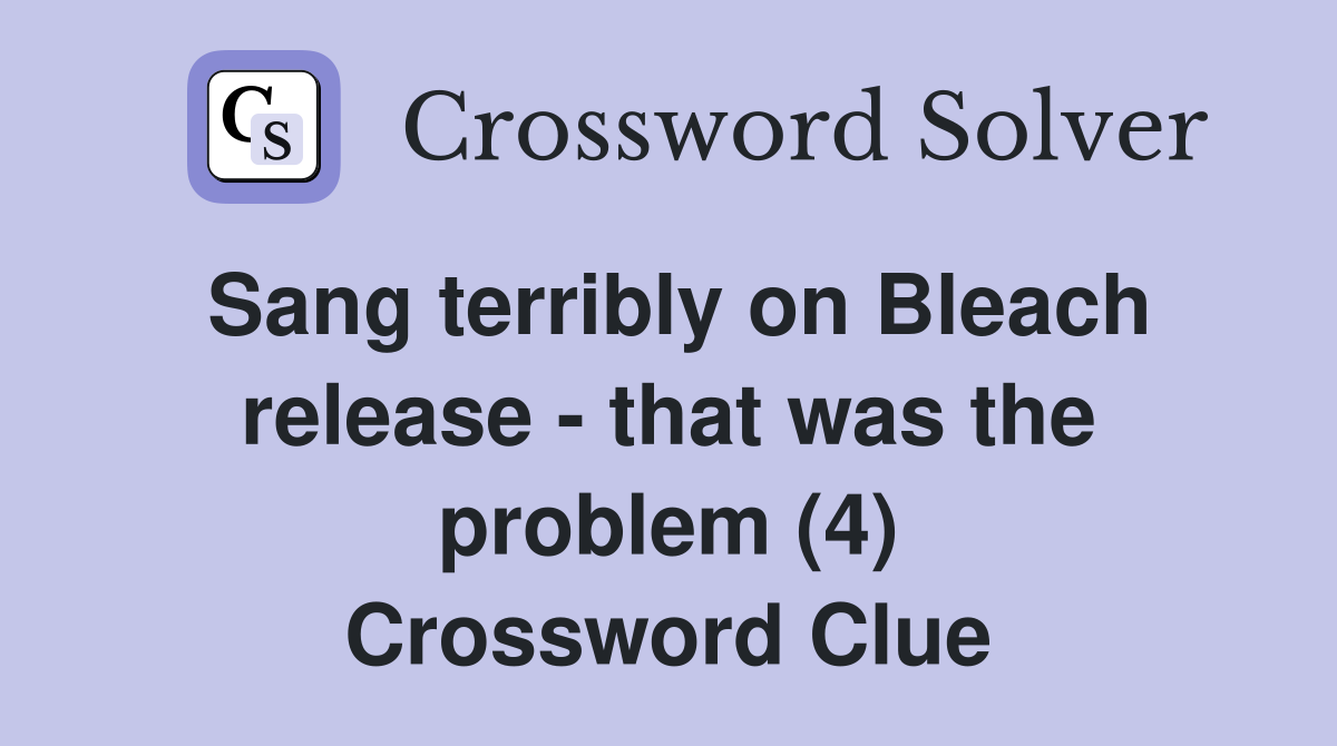 Sang terribly on Bleach release that was the problem (4) Crossword