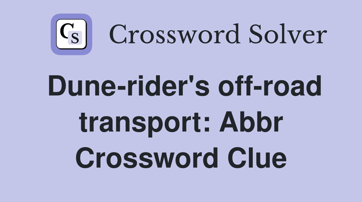 Dune rider #39 s off road transport: Abbr Crossword Clue Answers