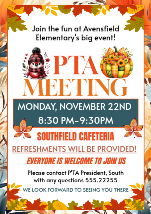 White Maximalist November Pta Meeting Invitation A4 Template PosterMyWall