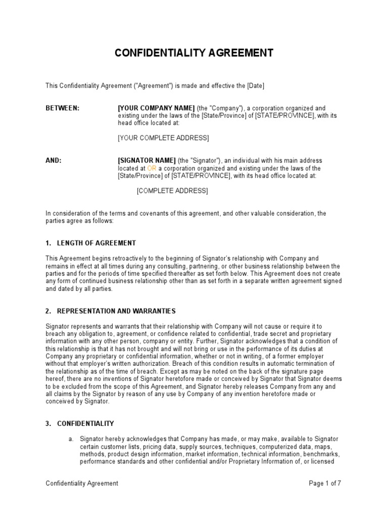 Company Employee Confidentiality Agreement Template Google Docs Word