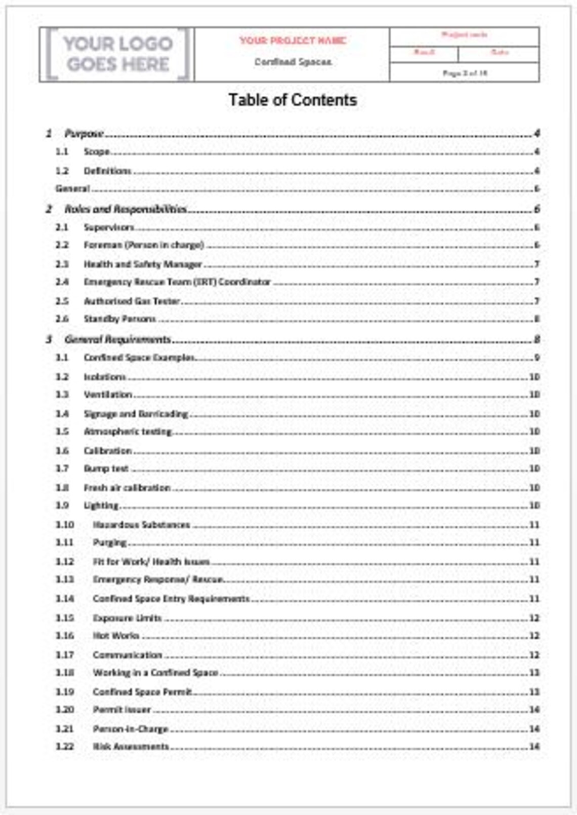 Confined Space Procedure Template Safety Management PTW Safety Word Etsy
